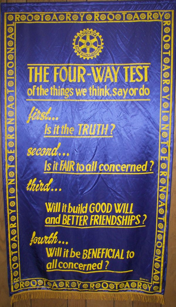 One of Rotary's Mottos is the 4-way test of the things we think, say, or do. We should consider the 4-way test in just about every decision we make.